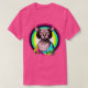 A sphynx cat is looking groovy in his psychedelic clothes.
