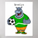 Funny hippo soccer player cartoon illustration poster