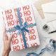 funny touch to your holiday Xmas present with this Santa famous funny Ho Ho Ho wrapping paper. with the repeating text Ho Ho Ho in red on white background . Makes a cute touch to a gift for a kid or family member perfect for your next Christmas eve