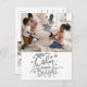Funny Rarely Calm Always Bright saying in silver foil hand lettered brush script holiday postcard with one photo on front and one photo with your message and names on back. This postcard will be a keeper and people are going to love it.
