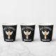 These funny party cups are perfect for birthday parties and more. They feature the slogan HOLY CANNOLI above an illustration of a cannoli with a halo and angel wings. Your custom message appears below the graphic. The bold white text is set against a black background.