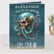 Funny Horror Spooky Kraken Skull For Him Birthday Card - Send spooky and funny birthday greetings to a great guy with this horror themed Kraken octopus skull birthday card. Featuring an illustration of a blue and silver Kraken skull lurking in the deep blue sea. The card reads "You're not getting older. You're just sinking deeper into the abyss!" The inside of the card has a sunken ships anchor and a skeleton hanging onto a ships wheel. A perfect card for a Halloween lover, horror movie fan, or someone with a dark sense of humor who also loves nautical themed things. Personalize by adding the recipient's name and editing the sample text inside to suit your needs. The text is displayed in a vintage-inspired font, and it's fully customizable. This card is available in both physical print and instant digital download for easy sharing via text, email, or social media. It's the ideal gift for gothic lovers, vintage enthusiasts, and spooky Halloween fans who appreciate a good laugh with a dark twist. Make his birthday unforgettable with this spooky Kraken card, perfect for anyone celebrating their birthday with a bit of dark humor.