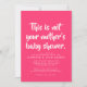 Modern times call for a modern baby shower invitation. If you're taking the party online due to social distancing, this is a perfect invitation for you. The bold playful text reads "This is not your mother's baby shower" and the party details below include room for online social meeting information, registry, shipping info and more along with the party details. The back features a coordinating playful dot pattern. The vivid hot pink color is default, but it can be changed by clicking "customize further." Great for co-ed showers, adoption showers and two dad or two mom couple showers too - and anyone who appreciates your sense of humor and wit!