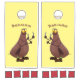 Natural Wood Cornhole Set, Yellow and Purple bags
