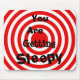 This funny mouse pad has red circles on it like you see a hypnotist use in cartoons.