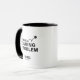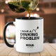 Funny pickleball accent coffee mug with black text: I have a dinking problem. Personalize it with your own name text and year. Unisex design for both men and women who love pickleball.
