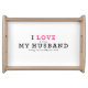 Funny I Love It When My Husband Serving Tray for your wife. A humorous quote in a hot pink fuchsia color and dark grey. Fun and stylish, this tee makes the perfect gift for your significant other. Makes a wonderful birthday or valentine's day present for your lady that will put a smile on her face.