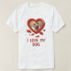 Funny pet owner t-shirt featuring the saying "I love my dog", with a photo of your doggy in the shape of a love heart, and a scattering of little red hearts.
