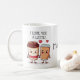 Show your love with our adorable customizable name mug! Featuring two cute takeout lattes holding hands with hearts floating above them and the sweet text “I Love You a Latte,” this mug is perfect for expressing your affection. Personalize it with your loved one’s name to make it extra special. Whether it’s for a romantic gift or a fun way to enjoy your morning coffee, this charming mug is sure to warm hearts and bring smiles.