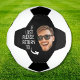 Funny personalized boy's soccer ball with the quote "If lost please return to" and a picture. Upload a photo to make it your own. To use a cut-out, the background needs to be a transparent png file. To make the cut-out of the teen or kid's face you can download any free mobile app or use an editing program like Canva or photoshop.