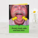 Funny Father's Day card for the Dad who loves his steak, cake and beer. The important food groups to survive kids! Digital caricature of a mustached man with a big wide open mouth with arrows pointing to his mouth to insert the steak, cake and beer. The way to a man's heart is through his stomach, right? The inside says, "Thanks, Dad, for teaching me about the important food groups. Happy Father's Day!" Inside text is customizable.