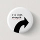 A funny black and white button that says: I'm with stupid with a red chevron underscore spell check alert under the misspelled word stoopid, and an arrow pointing to the person next to you.