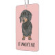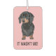 Funny pet doggy car air freshner featuring a cute Dachshund dog with the saying "It wasn't me!" in a modern bold font. The background can be changed to any color to suit your style.
