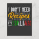 Hilarious Italy Food Quote Gift for Chefs. Funny Italian Cook Gift Culinary Kitchen Humor. I Don't Need Recipes I'm Italian.