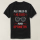My 11 yo wore adult XL (5’7” 165#). The 8yo is small framed. She wore adult small and tied it in the back. Grandma wore adult large with long sleeve shirt underneath. Tall girl adult medium. Dark haired male adult large. Good quality dark Heather gray, Gildan brand shirt. -it was next up from basic choice and cost about $20 per shirt. Not too thick or thin. Washed and dried well, no major shrinkage. Not see-through. Can wear a bra under it fine. Screen print is just as shown and well done, front and back.