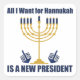 All I Want for Hanukkah is a new president sticker for a Jewish friend. Let's get a new POTUS for Chanukah. A funny political holiday design with a blue and gold menorah.