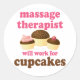 Cute chocolate cupcake design has "Massage Therapist - Will Work For Cupcakes" quote in pink. Give a funny occupation gift to your favorite massage therapist.