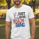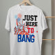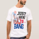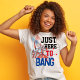 Make a statement this Independence Day with this fun and patriotic t-shirt. Featuring a stylized Statue of Liberty holding fireworks and bold typography that reads "JUST HERE TO BANG," this design is perfect for 4th of July parties, backyard BBQs, or watching firework displays. Whether you are looking for a humorous holiday shirt or a unique gift for a patriotic friend, this shirt delivers a blast of personality.