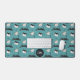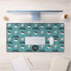 Funny Jumping Cat Faces on Teal Monogram Desk Mat