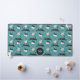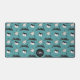 This fun desk mat is perfect to keep for yourself, or to give as a gift to that friend or relative who is crazy about cats. It features a pattern of funny cartoon cat faces and jumping black cats on a teal background. A black circle banner at the bottom holds your monogram in white.