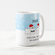 A funny and festive holiday mug design featuring toilet paper rolls wearing Santa hats saying "Just Roll With It." A light-hearted laugh at the toilet paper shortage during COVID quarantine and events. Personalize the text and add your names.