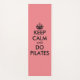 Funny keep calm and do pilates coral pink yoga mat for workout. Vintage keepcalm typography design with crown in any color. Great Birthday gift for yoga lessons teacher, personal trainer, coach or fitness instructor. Fun personalized gym equipment for classes and physical therapy. Add your own custom name or quote optionally. Customizable background color. Keep calm and carry on humor.