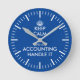 Funny keep calm corporate accounting office clock. Modern round wall Clock with custom keep calm and carry on quote. Blue or custom color. Also available in large and square shape. Fun decor for accountant, bookkeeper, tax preparer, auditor, accounting firm, tax company, business boss, coworker, colleague, employees etc. Office humor gift ideas.