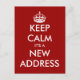 Funny keep calm moving postcard for new address. Make your own funny keep calm and carry on parody design for your new house. Keepcalm humor for home and business. Change quantity to get the cheapest price per post card.