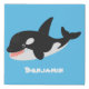 This cute design features a happy smiling killer whale blowing bubbles on a blue background for fun!