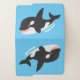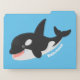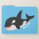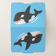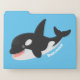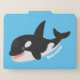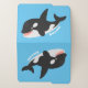 This cute design features a happy smiling killer whale blowing bubbles on a blue background for fun!