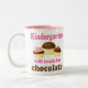 Funny teaching slogan says Kindergarten - Will Teach For Chocolate. Great gift for any special kindergarten teacher or get matching gifts for your whole school department.