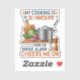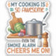 Bring humor into the heart of your home with this playful sticker featuring the phrase, "My Cooking Is So Awesome, Even The Smoke Alarm Cheers Me On!" Surrounded by colorful illustrations of pots, fresh vegetables, a cutting board, and kitchen spices, this quirky artwork celebrates cooking mishaps with a smile. Perfect for home chefs, food lovers, and anyone who appreciates a good culinary joke in a warm and inviting kitchen.