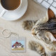 Funny Knitting Cat Tangled Yarn Hobby Humor Keychain
