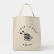 Check out these cool tote bags for your crafting. They feature a ball of yarn and a customizable name.