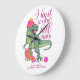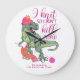 A funny knitting quote "I knit so I don't kill people' is included on this humorous image. The dinosaur (a Tyrannosaurus Rex!) is knitting a scarf and wearing a cute hat. Add your own message to personalize for a dino-mite gift.