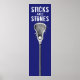 Creative lacrosse "sticks and stones" poster for any college or high school player. Edit or add your text to customize.