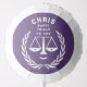 Creative law school graduation party decor or grad gift featuring scales of justice cartoon and funny quote on purple background. To personalize edit text to add lawyer's name.