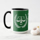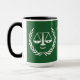 Creative lawyer mug featuring scales of justice personified and funny quote. To personalize edit text to add name.