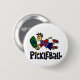 Silly funny leaping pickleball dude is wearing blue shorts and blue and red shirt in this fun original art design.