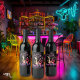 Raise the Neon Cheers! Our wine bottle label showcases the 'Let's Get Lit' neon sign and features the party animal duo giraffe and flamingo. It's not just a label; it's a proclamation of a cool party.