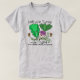 This cute cartoon t-shirt has a drawing of lettuce, a turnip, thyme, and a couple smiling beans, alongside the funny, punny words, "Lettuce Turnip on Thyme or I'll wonder where you've bean." The colors include bright shades of green, purple and brown. This is a humorous t-shirt for any gardening fan or fan of silly wordplay and food puns.