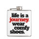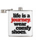 Add a touch of poetic whimsy to your favorite drink with this flask, which features the philosophical saying "Life is a Journey" ... and then follows up with a practical suggestion to "Wear Comfy Shoes".