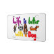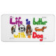 Fun colorful letters saying Life is Better with a Dog with fun puppy dogs original art design. Can also change background color when ordering.
