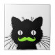 FUNNY LIME GREEN MUSTACHE VINTAGE BLACK CAT TILE