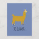 This funny little Llama pun will have you cracking up for days. Product design features a cool little gold llama and a blue background. Words say "Yo Llama" a pun on "yo mama."