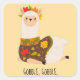 Funny Thanksgiving themed design features cute llama in Fall sweater with autumn leaves crown and "gobble gobble" text.