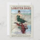 This lobster bake invitation template features a digitally enhanced print of a vintage 1914 funny painting of a lobster with a banjo serenading a girl on the beach. You can easily personalize the text and customize the background color with this template.