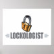 LOCKOLOGIST. Humorous title for someone who loves locks - and, who has a sense of humor. Makes a unique and funny gift for a locksmith or a lock collector. Design features a big key lock. Find more funny designs like this one at the Ologist Shop.