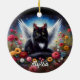Funny Long Haired Black Demon and Angel Cat Ceramic Ornament