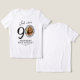 Humorous 90th birthday t-shirt features a fun saying 'Look who's 90' with a clever twist - a personalized photo in place of zero. Surrounded by a doodley picture frame, this t-shirt sets the tone for a lively celebration. Plus, it comes with a simple text template that is easy to personalize, making it a perfect keepsake of this remarkable birthday.